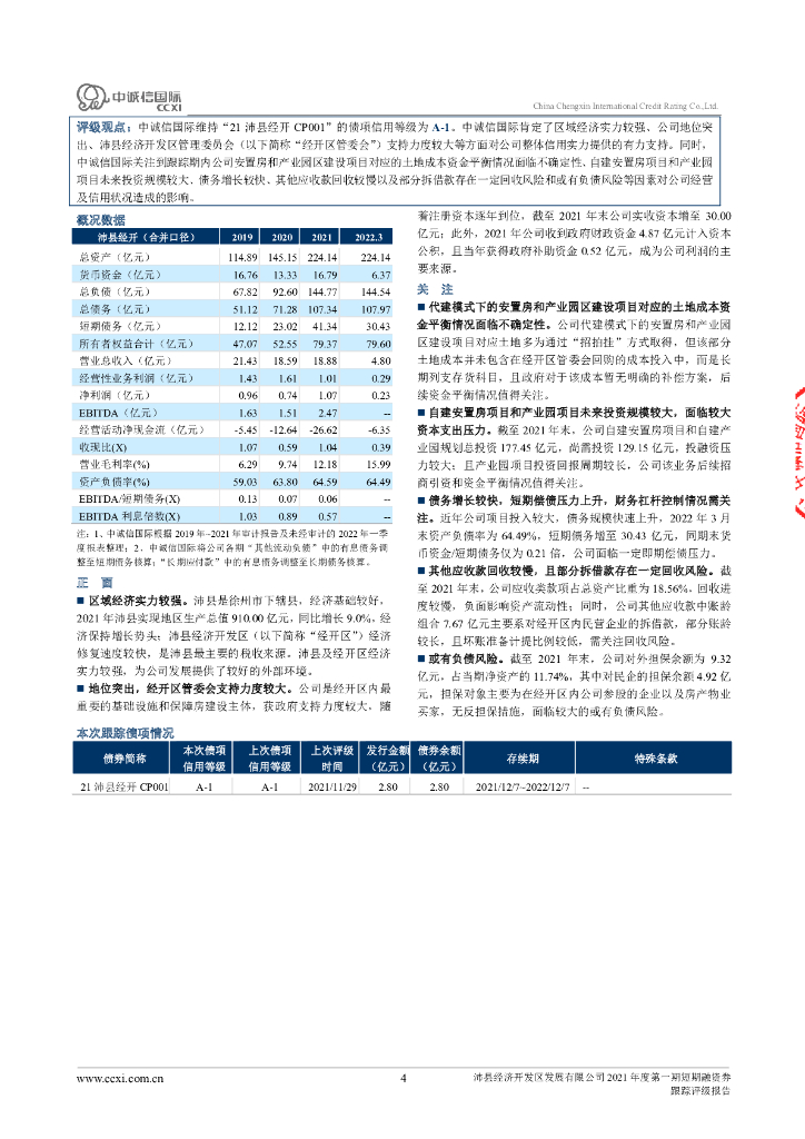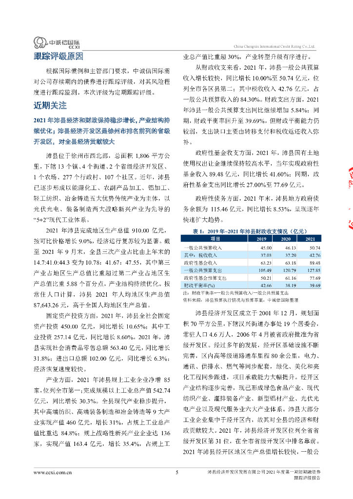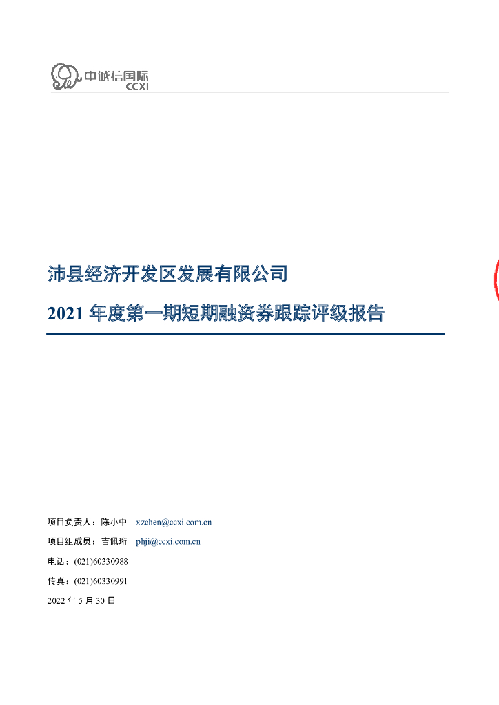 中诚信:沛县经济开发区发展有限公司2021年度第一期短期融资券跟踪评级报告.pdf