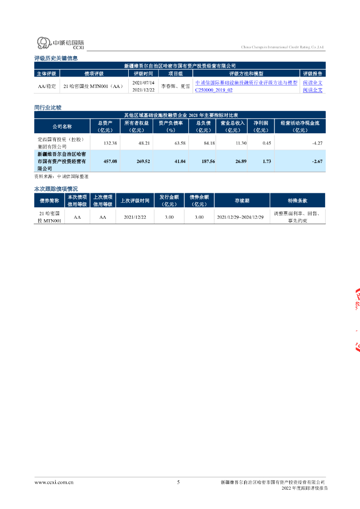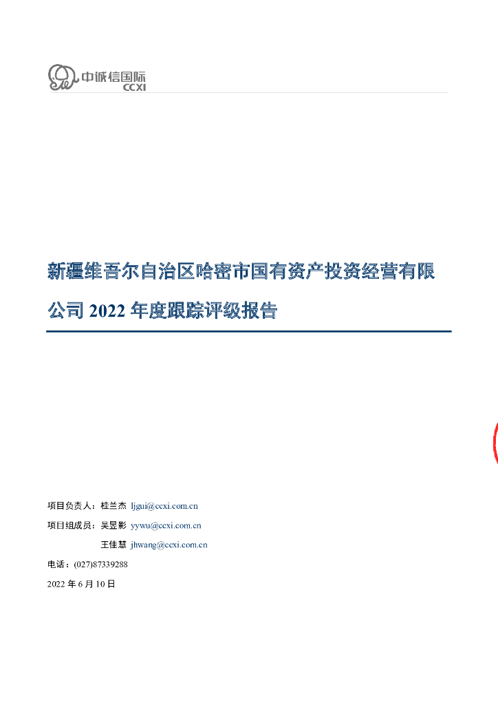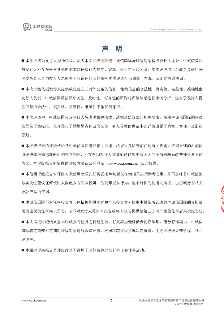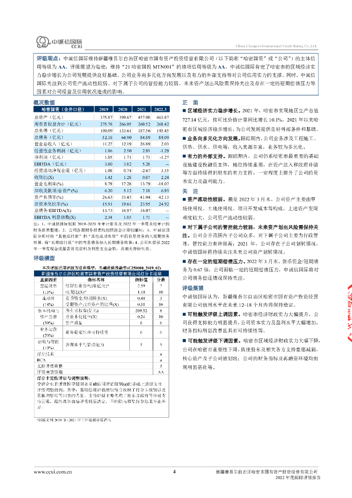 中诚信:新疆维吾尔自治区哈密市国有资产投资经营有限公司2022年度跟踪评级报告.pdf