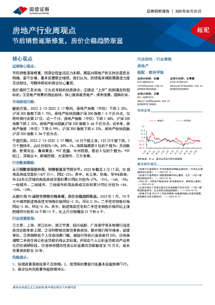 国信证券:房地产行业周观点:节后销售逐渐修复,房价企稳趋势渐显.pdf