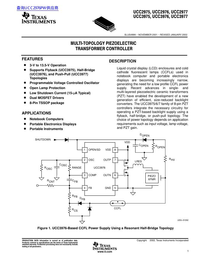 TEXAS INSTRUMENTS UCC2975, UCC2976, UCC2977, UCC3975, UCC3976, UCC3977 数据手册.pdf