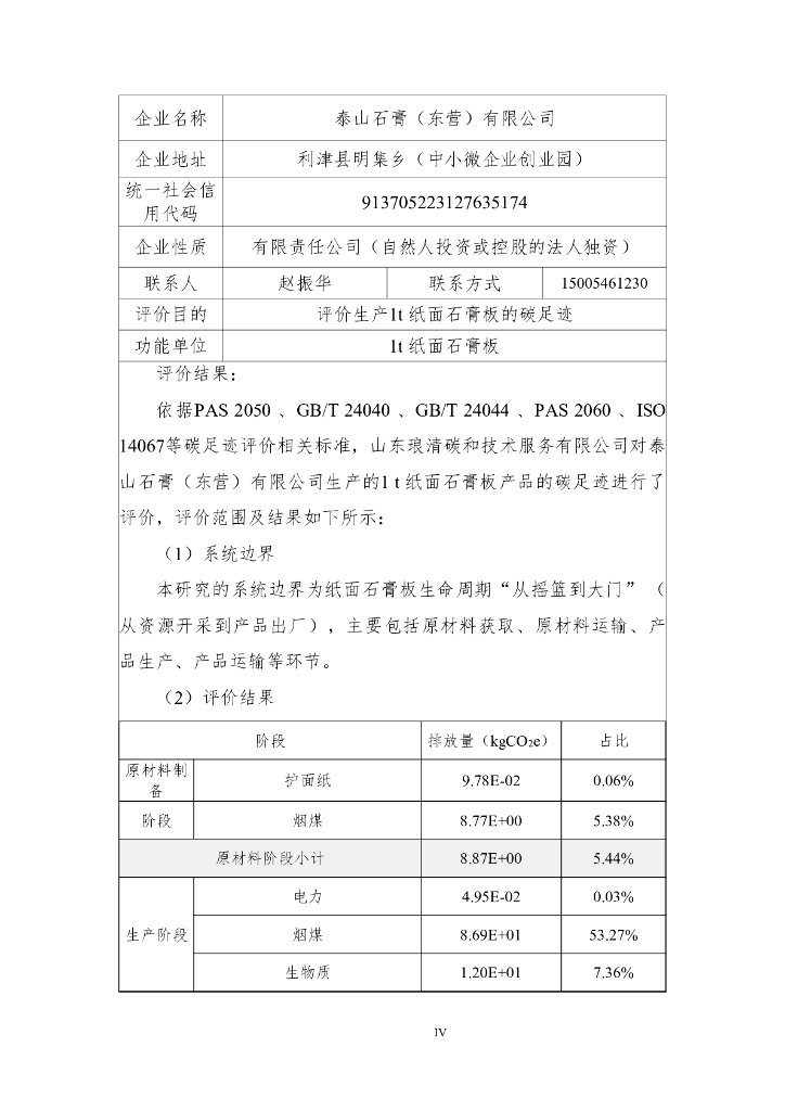 泰山石膏(东营)有限公司:2023年纸面石膏板产品碳足迹评价报告.pdf