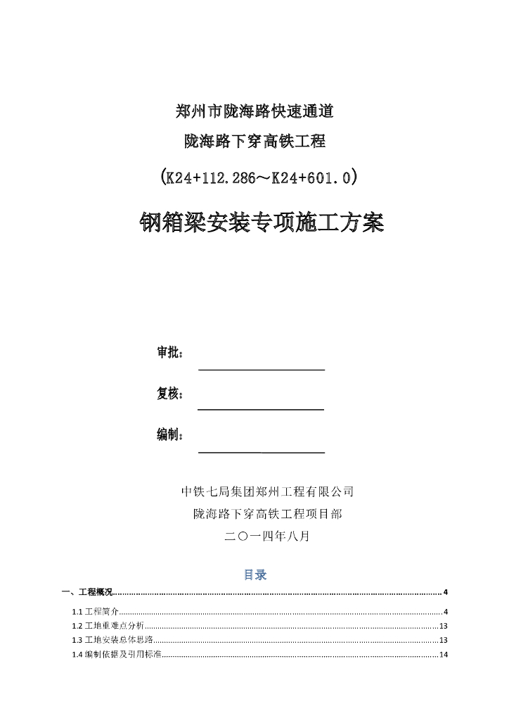 [郑州]城市快速通道下穿高铁工程钢箱梁安装专项施工方案(191页,大量施工图纸).doc