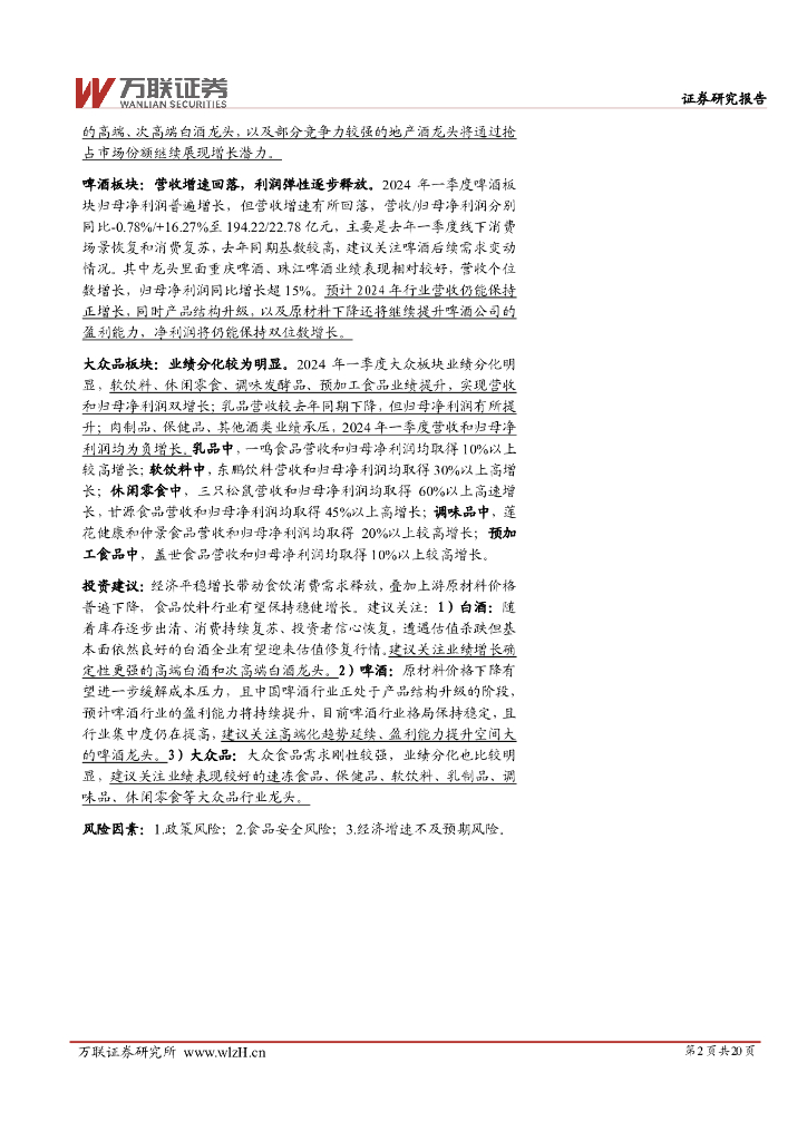 万联证券:食品饮料行业2024Q1业绩综述报告:整体稳健增长,零食、白酒、软饮料业绩较为出色.pdf