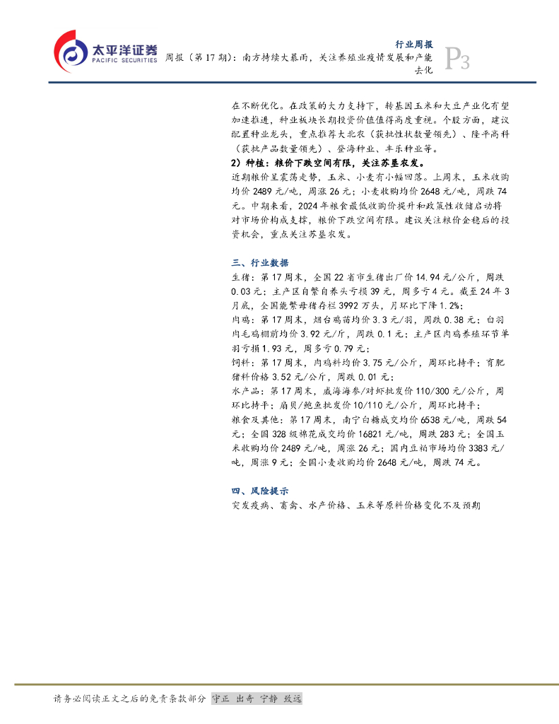 太平洋证券:农林牧渔周报(第17期):南方持续大暴雨,关注养殖业疫情发展和产能去化.pdf