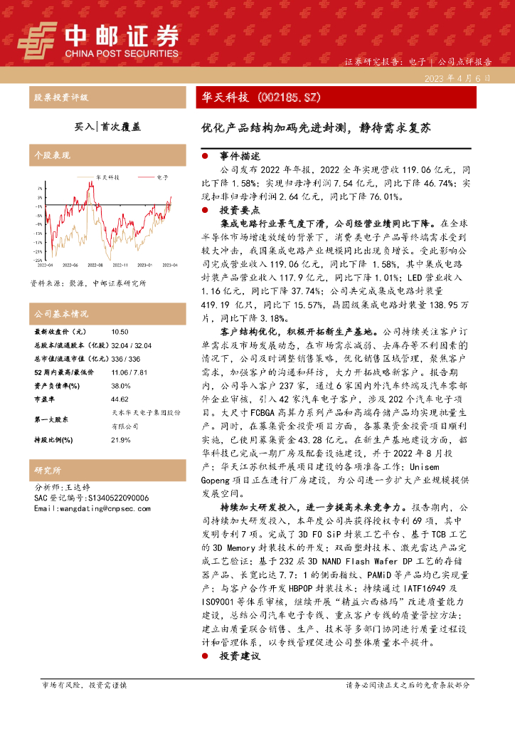 中邮证券:华天科技(002185)-优化产品结构加码先进封测,静待需求复苏.pdf