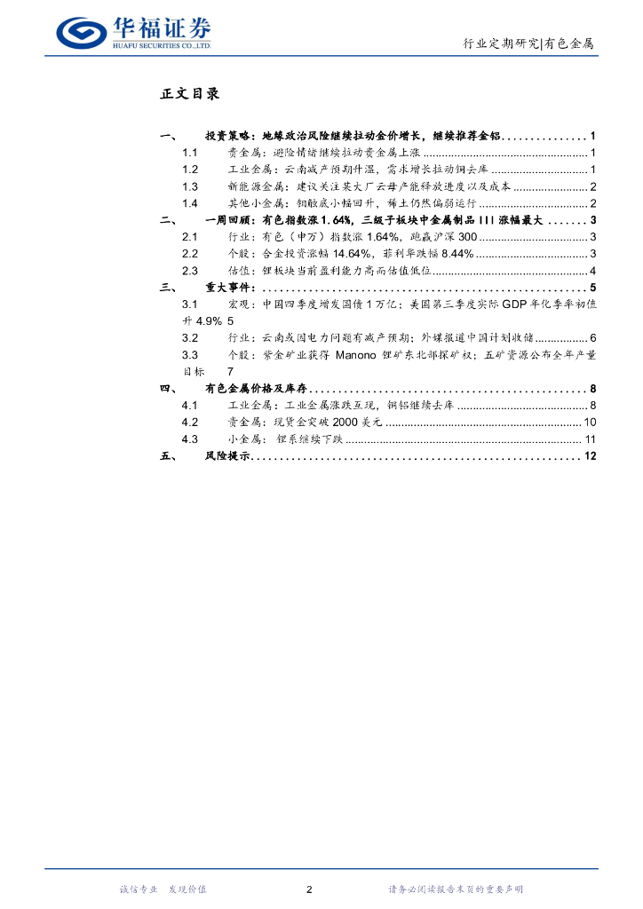 华福证券:有色金属行业周报:地缘政治风险继续拉动金价增长,继续推荐金铝.pdf