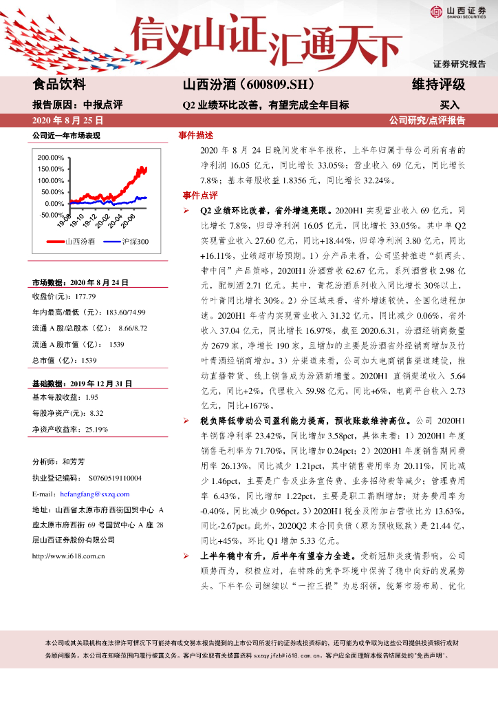 山西证券:山西汾酒(600809)-Q2业绩环比改善,有望完成全年目标.pdf