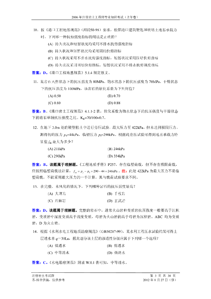2006年全国注册岩土工程师专业知识考试试题(解析).pdf