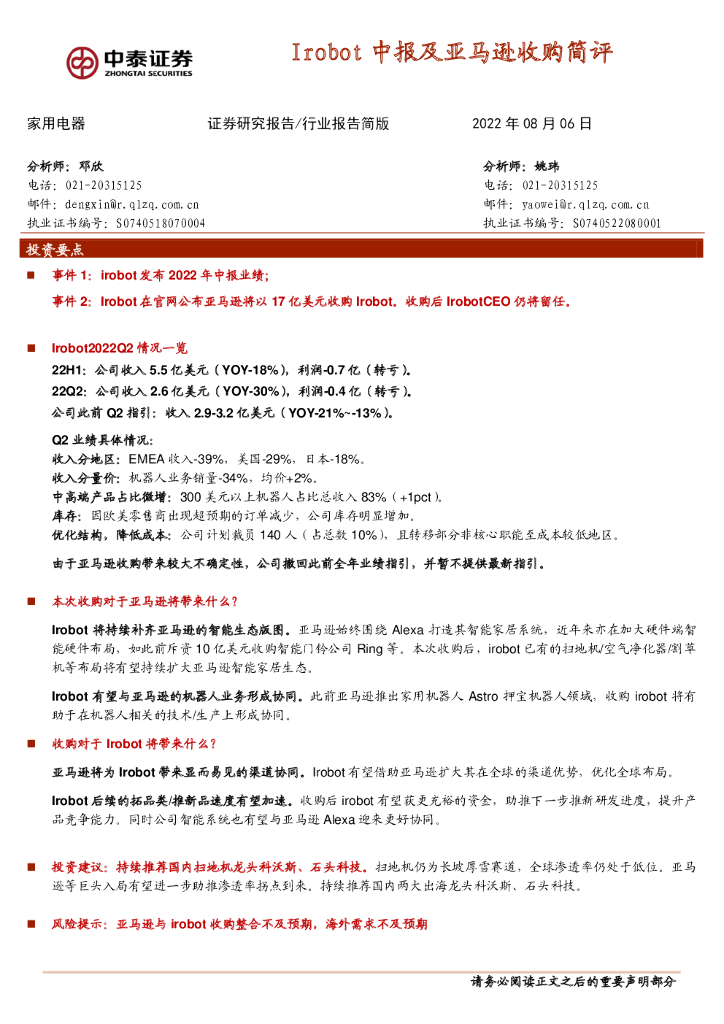 中泰证券:家用电器:Irobot中报及亚马逊收购简评.pdf