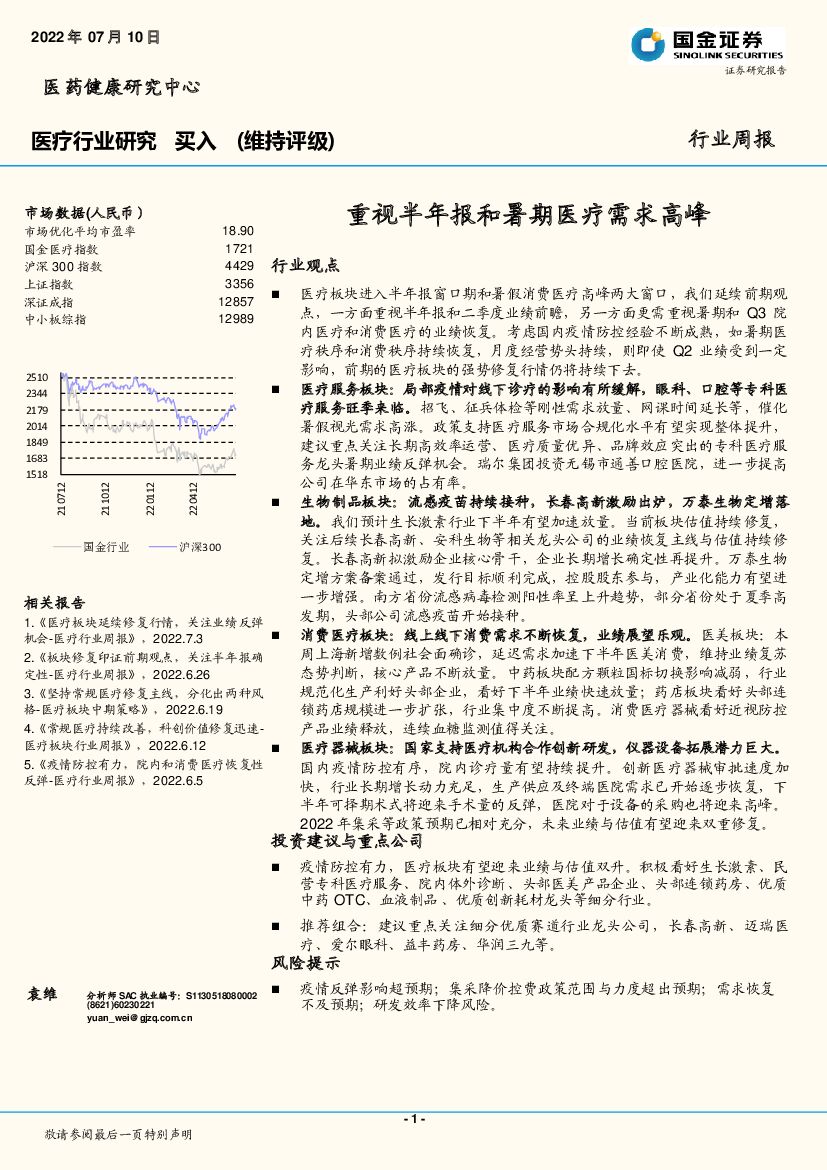 国金证券:医疗行业研究:重视半年报和暑期医疗需求高峰.pdf