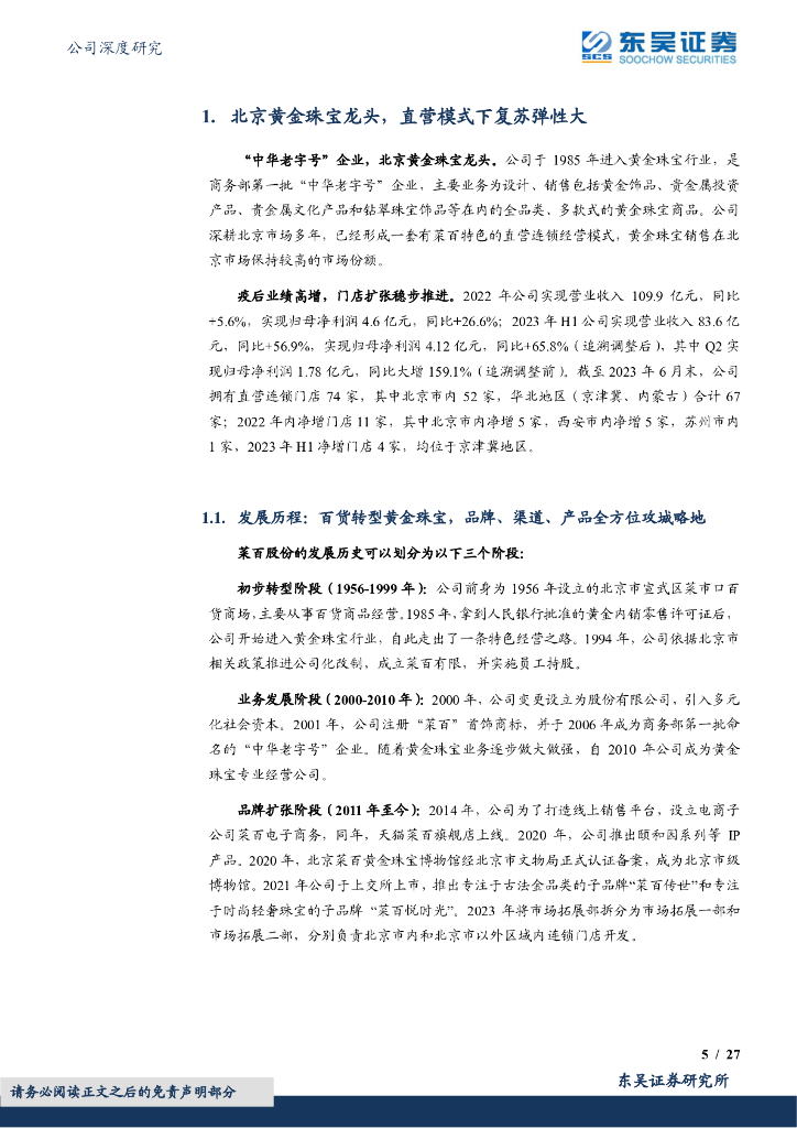 东吴证券:菜百股份(605599)-京城黄金产品老字号,全直营模式下业绩高弹性.pdf