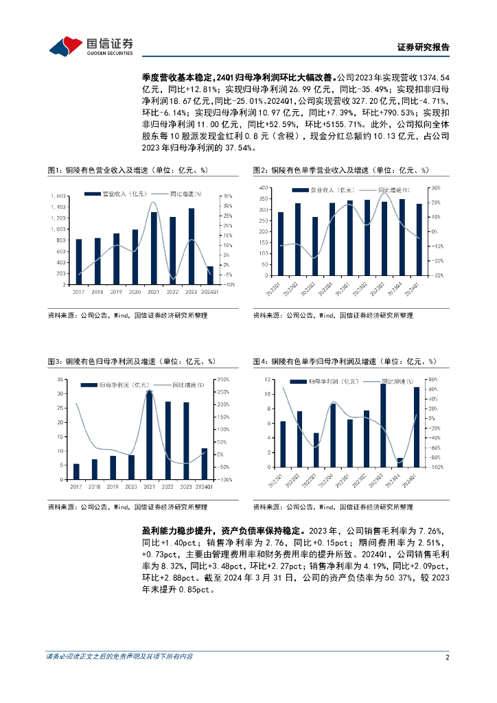 国信证券:铜陵有色(000630)-2023年矿产铜量增239%,一季度净利润改善.pdf