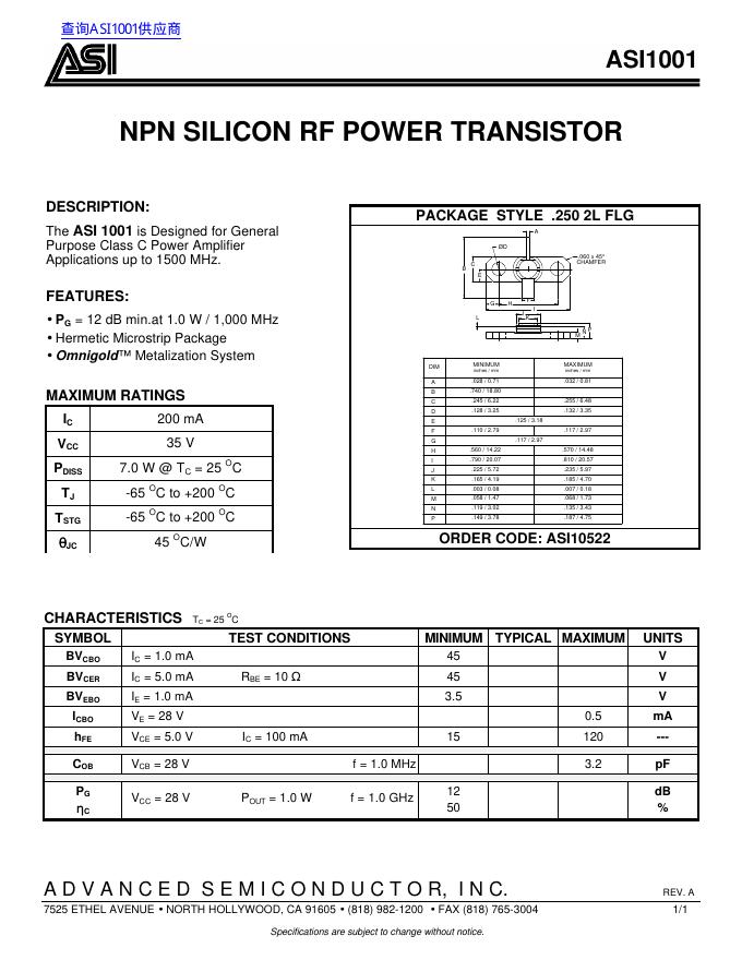 ASI ASI1001 数据手册.pdf