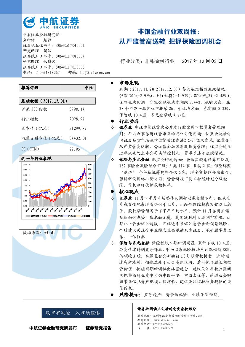 中航证券:非银金融行业双周报:从严监管高送转 把握保险回调机会.pdf