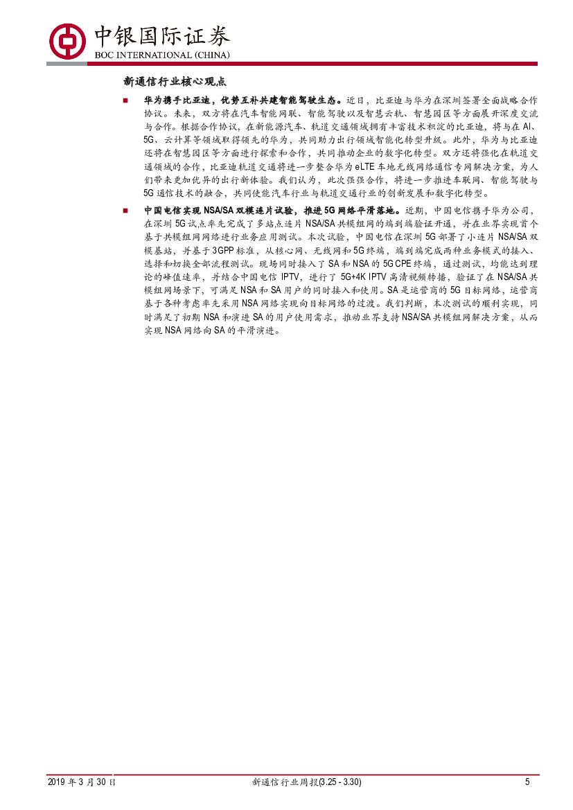 中银国际:新通信行业周报:华为携手比亚迪赋能智能驾驶,中国电信率先实现NSA/SA双模连片试验.pdf