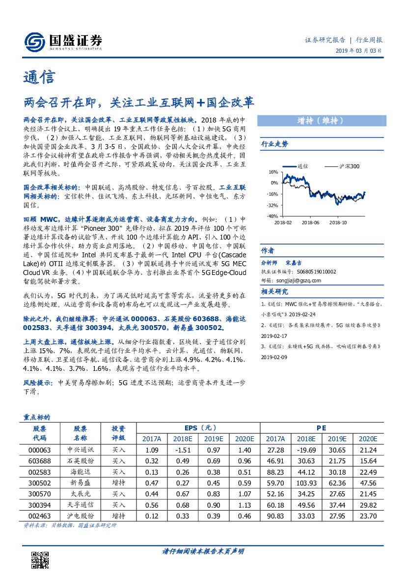 国盛证券:通信行业周报:两会召开在即,关注工业互联网+国企改革.pdf
