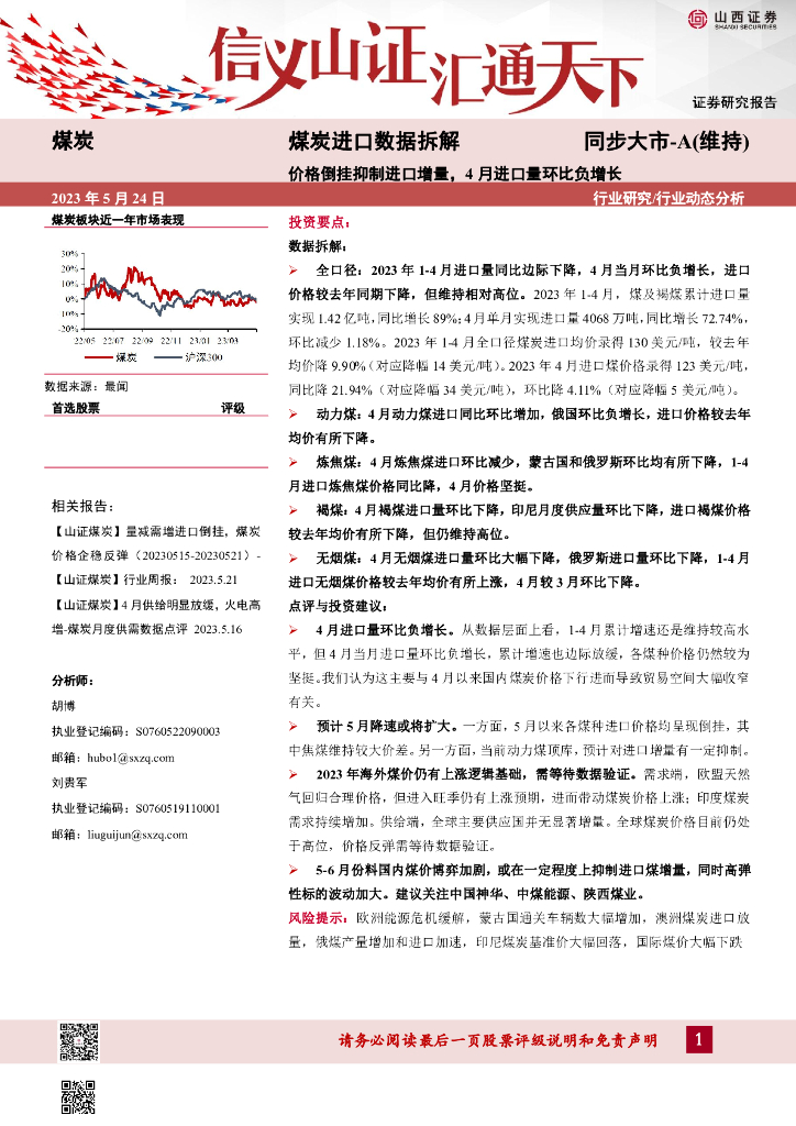 山西证券:煤炭进口数据拆解:价格倒挂抑制进口增量,4月进口量环比负增长.pdf