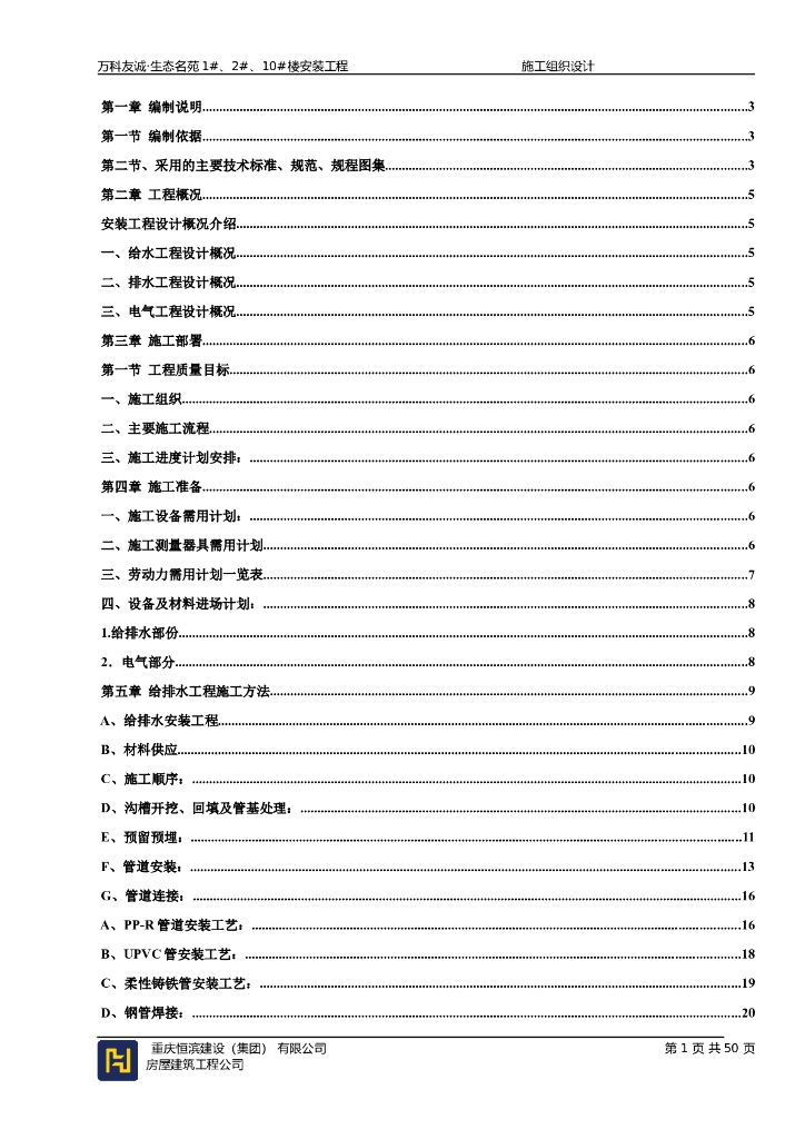 万科安装工程-施工组织设计完整版.doc