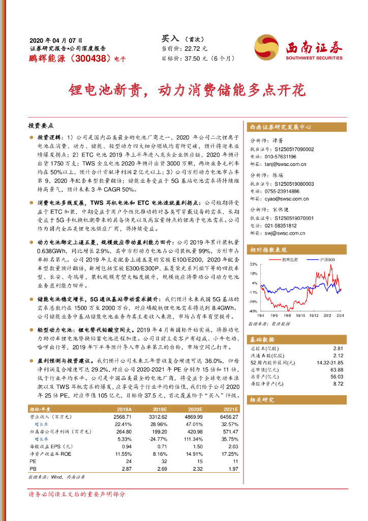 西南证券:鹏辉能源(300438)-锂电池新贵,动力消费储能多点开花.pdf