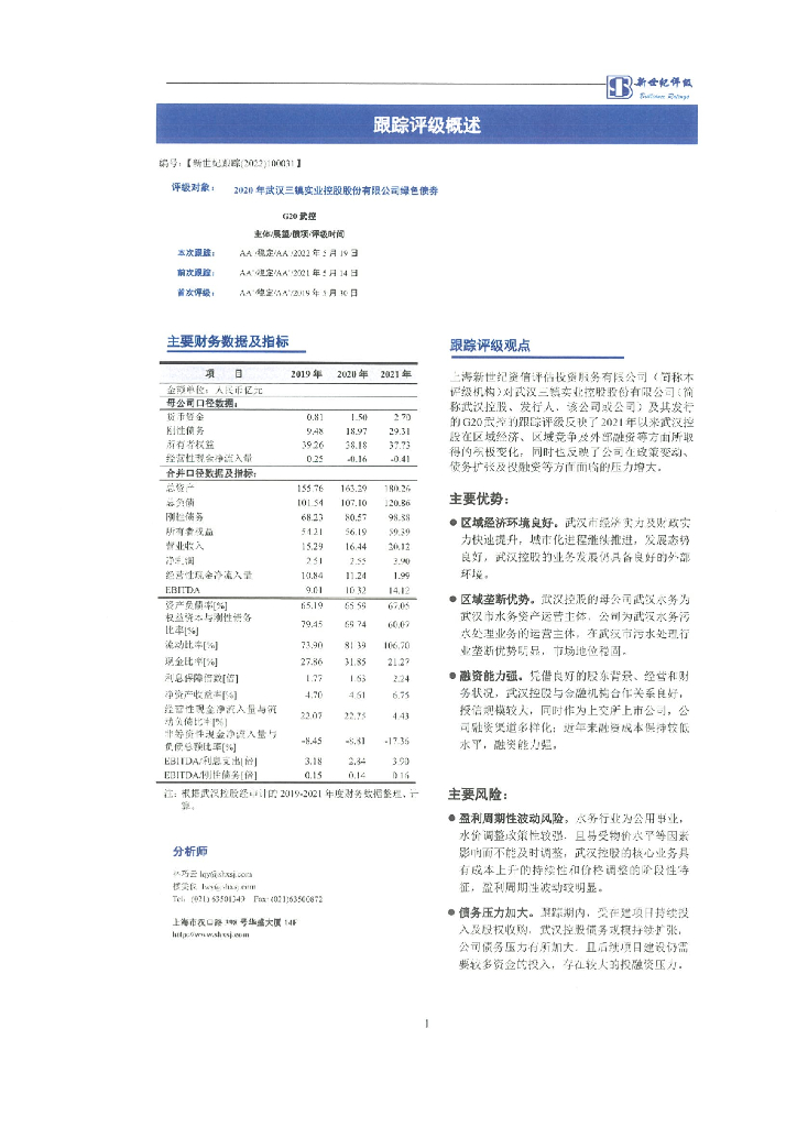 新世纪:2020年武汉三镇实业控股股份有限公司绿色债券跟踪评级报告.pdf