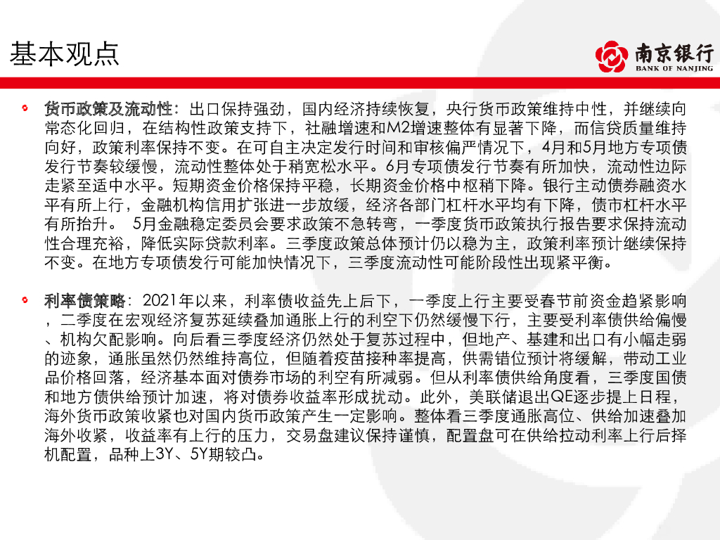 南京银行:债券市场2021年三季度展望-基本面利空趋弱,配置逢高积极介入.pdf