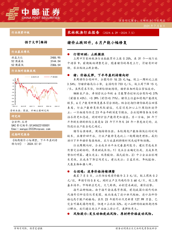 中邮证券:农林牧渔行业报告:猪价止跌回升,6月产能小幅修复.pdf