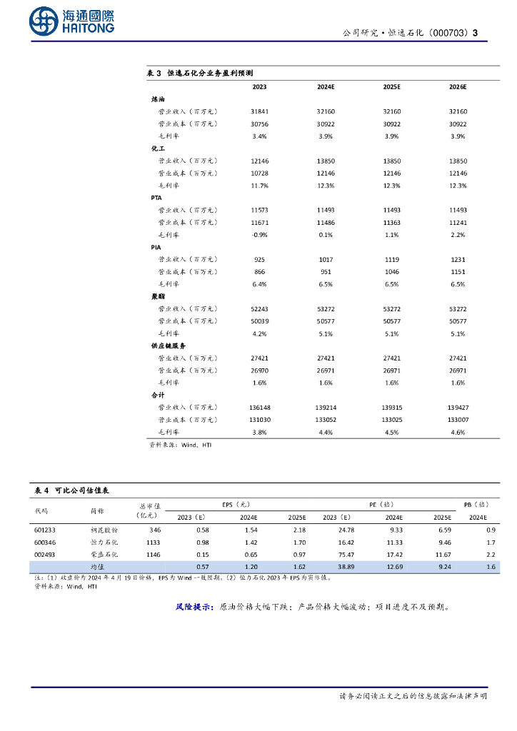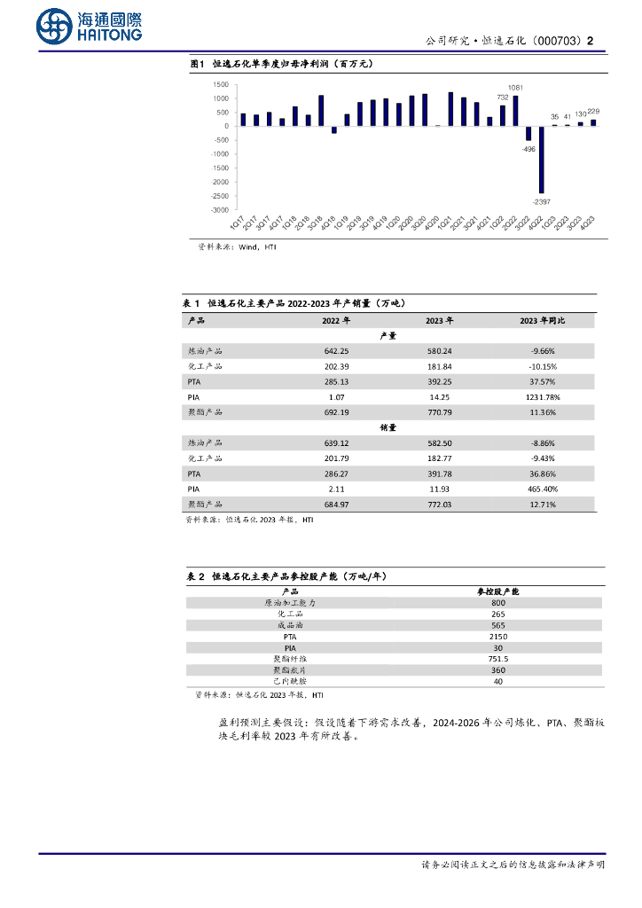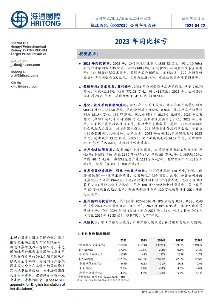 海通国际:恒逸石化(000703)-公司年报点评:2023年同比扭亏.pdf