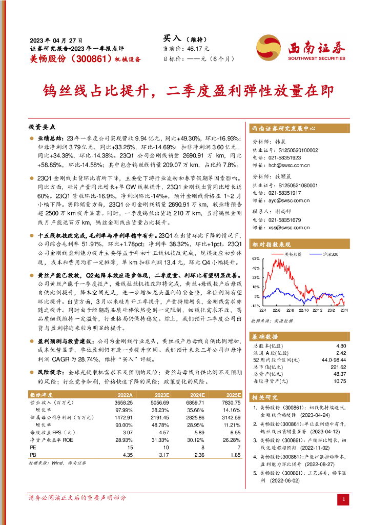 西南证券:美畅股份(300861)-钨丝线占比提升,二季度盈利弹性放量在即.pdf