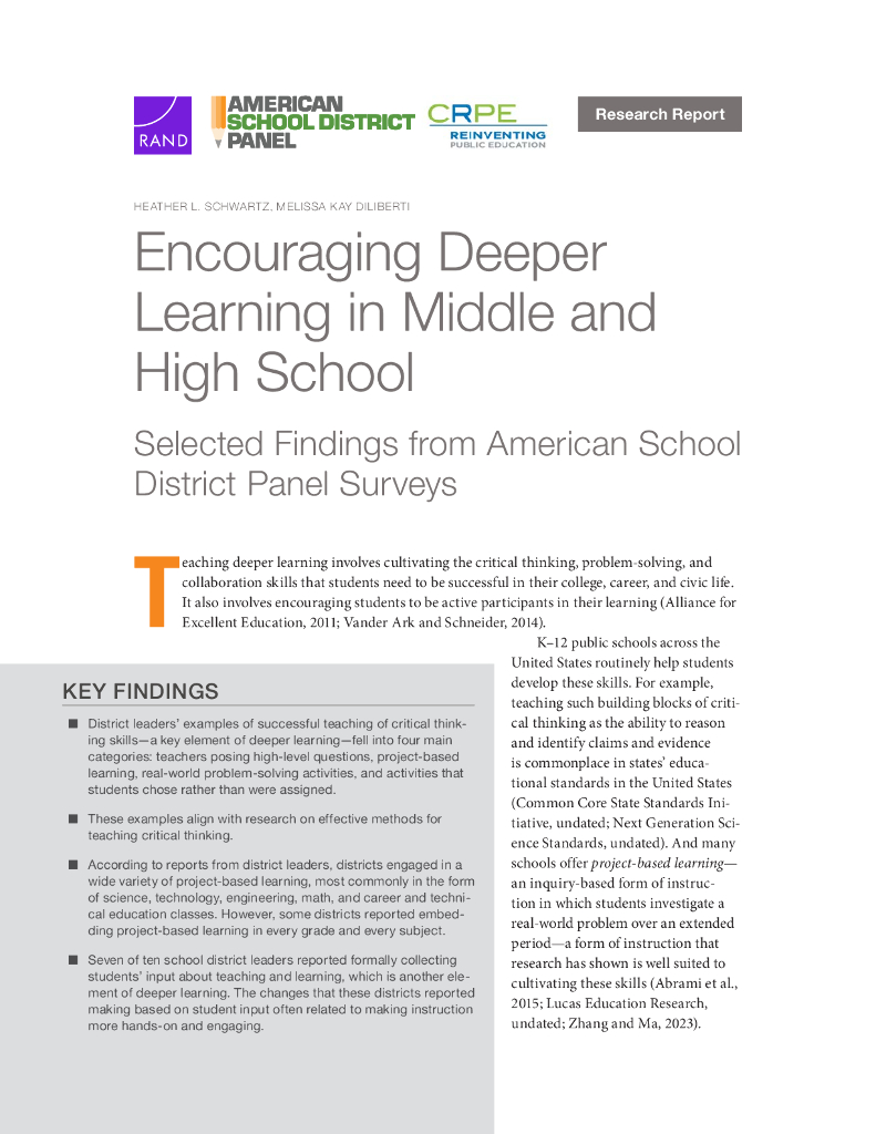 Rand兰德:2024年鼓励中学生深入学习-美国学区小组调查的精选结果报告(英文版).pdf