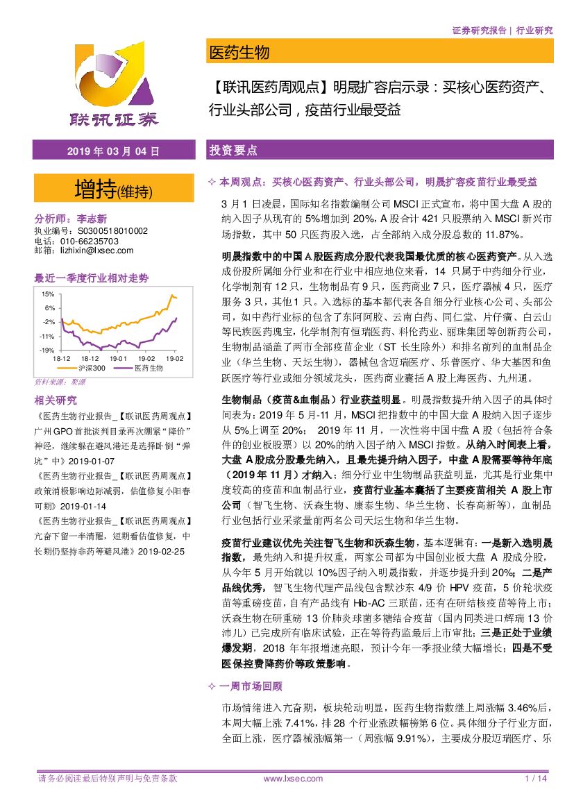 联讯证券:【联讯医药周观点】明晟扩容启示录:买核心医药资产、行业头部公司,疫苗行业最受益.pdf
