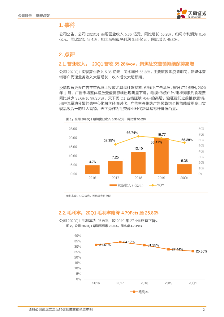 天风证券:天下秀(600556)-20Q1业绩+45%大超预期,推出三大直播带货红人解决方案打造第二成长曲线.pdf