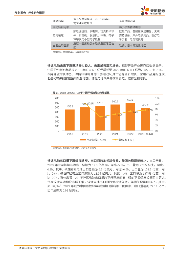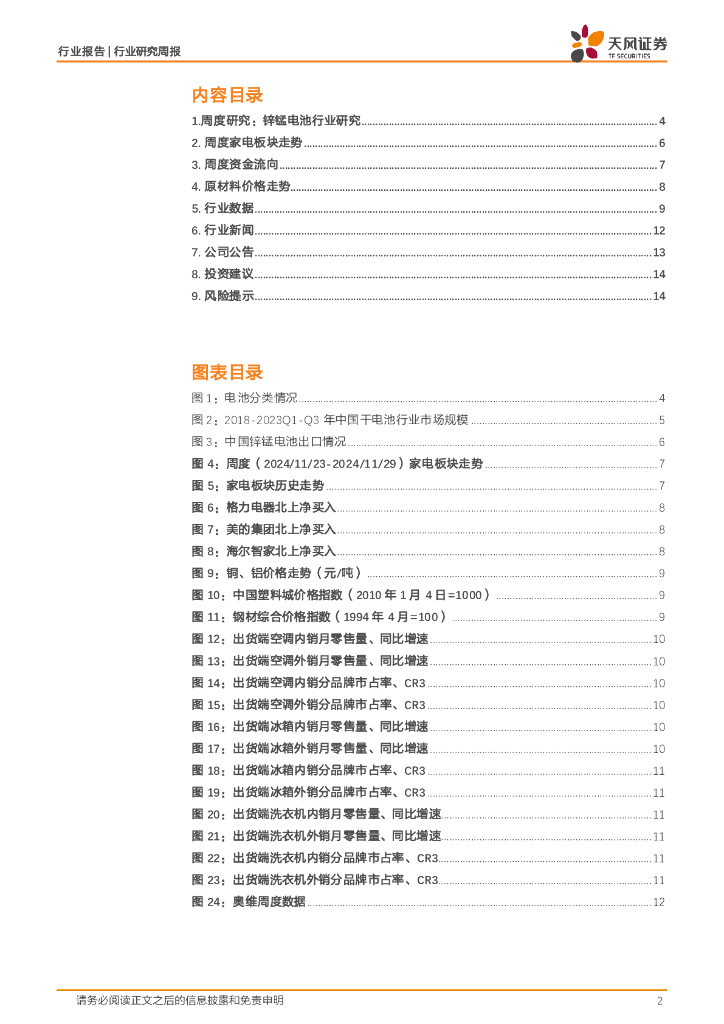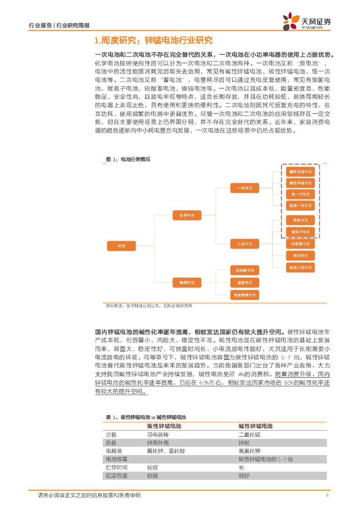 天风证券:我国干电池行业24W48周度研究:碱锰逐渐替代碳锰,下游需求带动行业温和增长.pdf