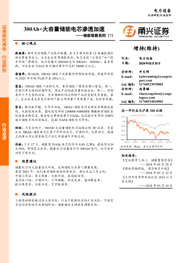 甬兴证券:储能观察系列(7):300Ah+大容量储能电芯渗透加速.pdf