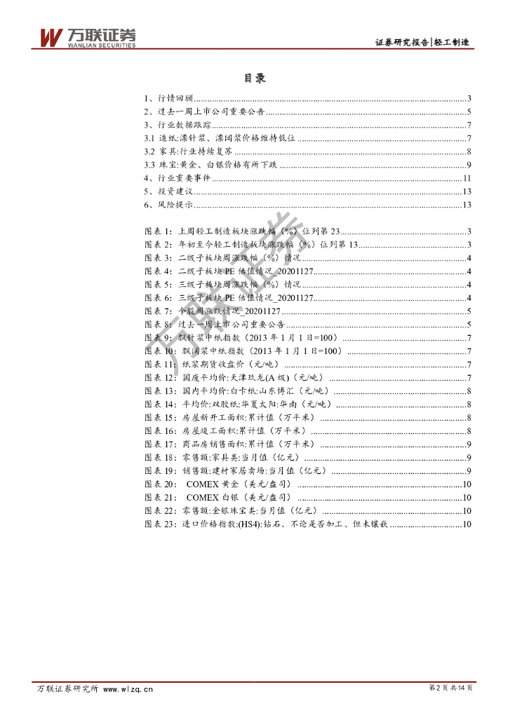 万联证券:轻工制造行业周观点报告:黄金白银价格继续下行,白卡、双胶纸价格继续上涨.pdf