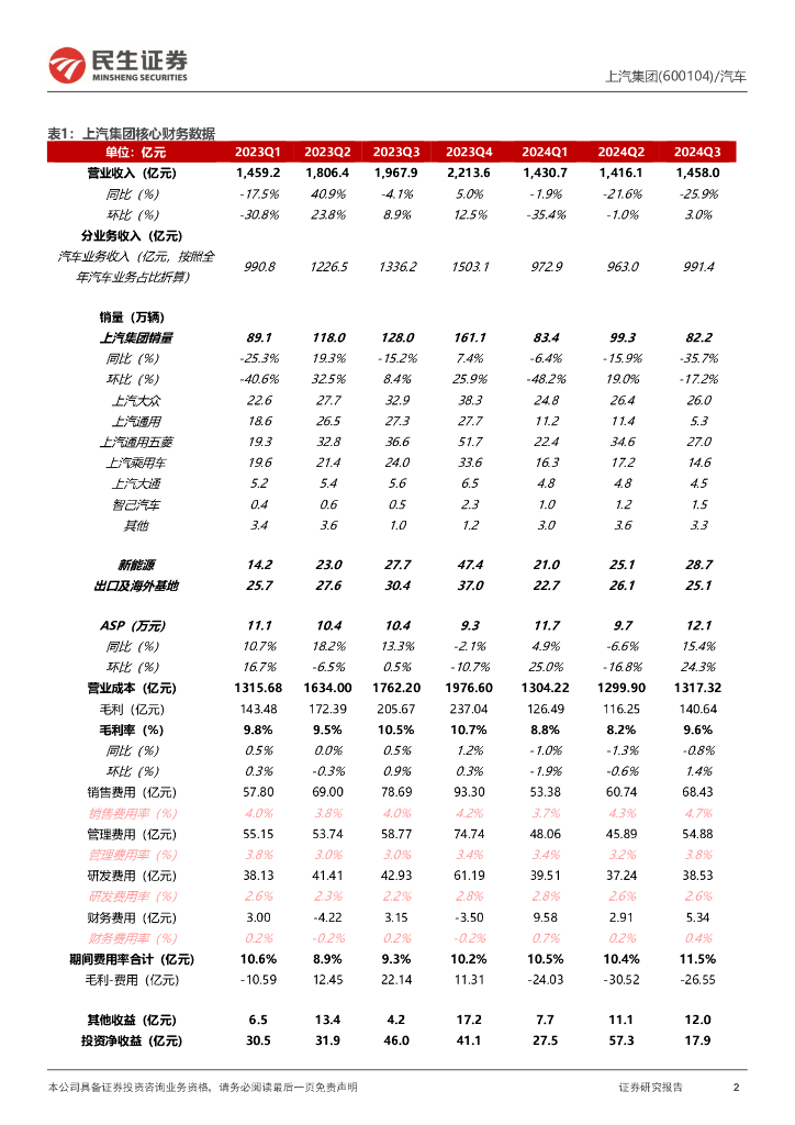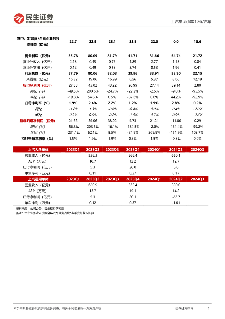 民生证券:上汽集团(600104)-系列点评八:24Q3,合资亏损收窄,自主新能源转型加速.pdf