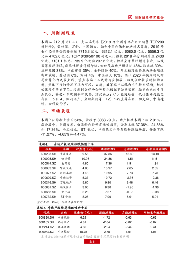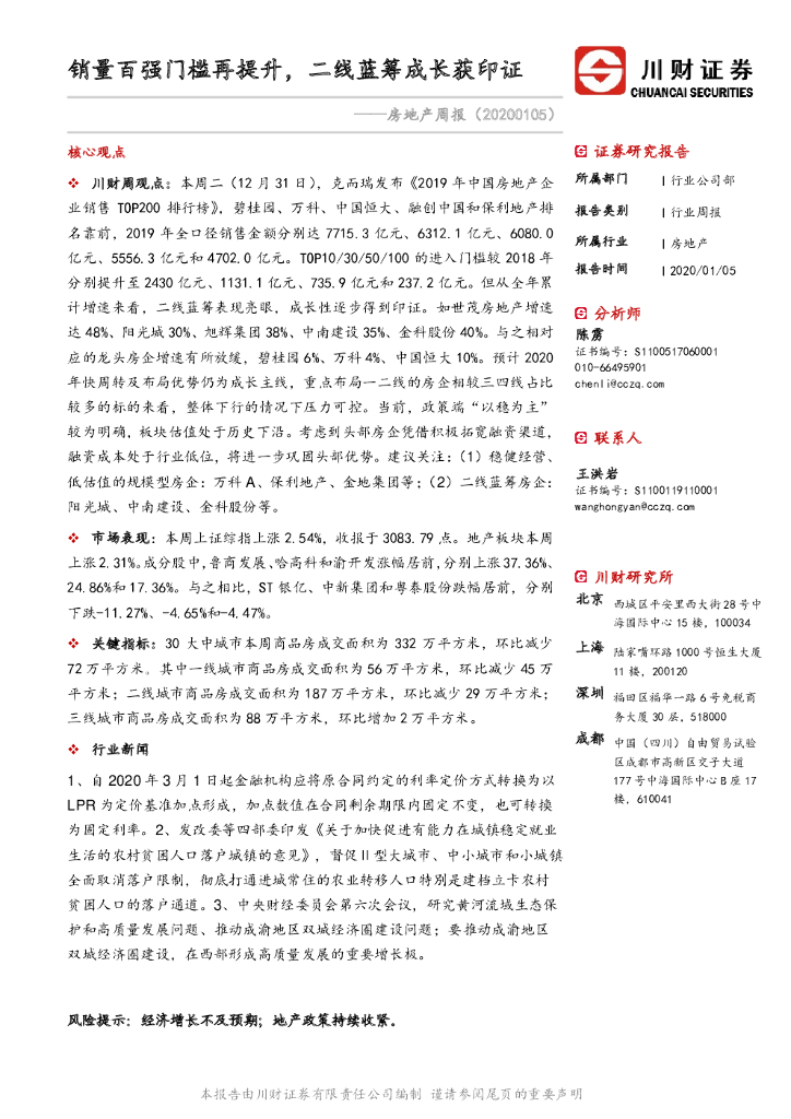 川财证券:房地产周报:销量百强门槛再提升,二线蓝筹成长获印证.pdf