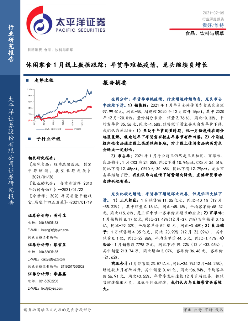 太平洋证券:休闲零食1月线上数据跟踪:年货季难抵疫情,龙头继续负增长.pdf