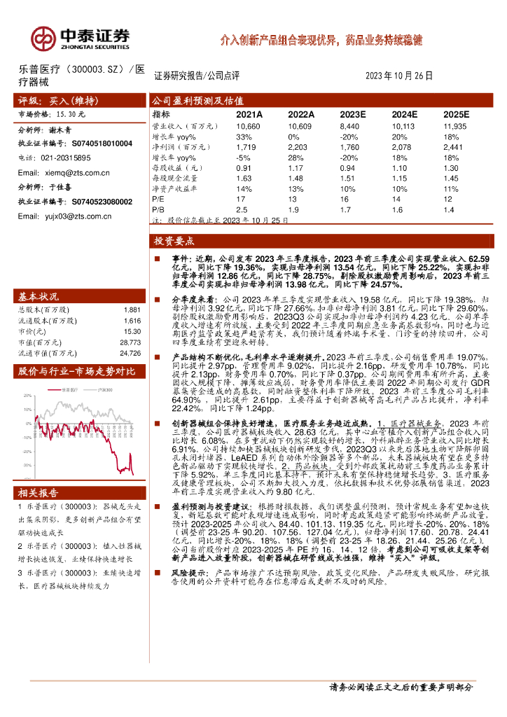 中泰证券:乐普医疗(300003)-介入创新产品组合表现优异,药品业务持续稳健.pdf