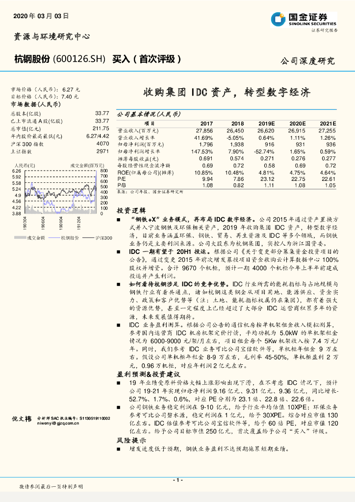 国金证券:杭钢股份(600126)-收购集团IDC资产,转型数字经济.pdf