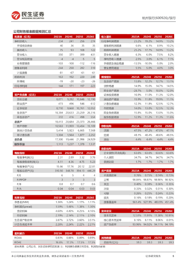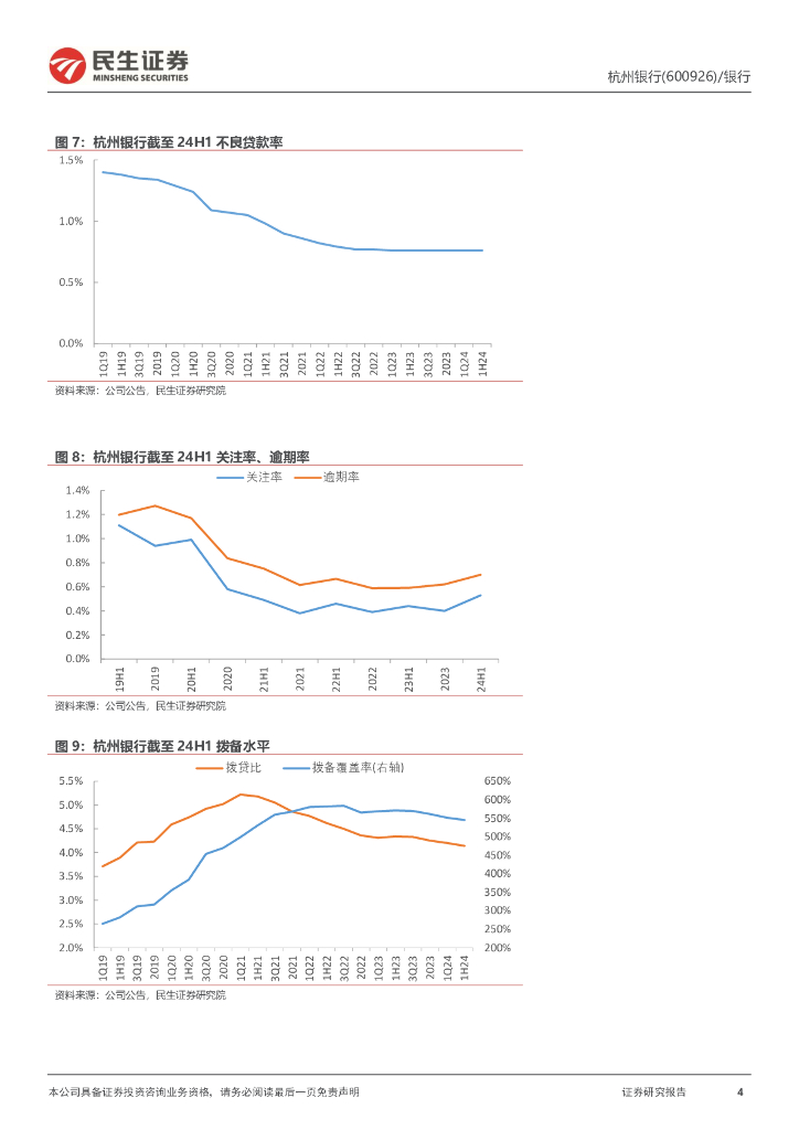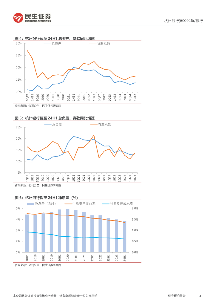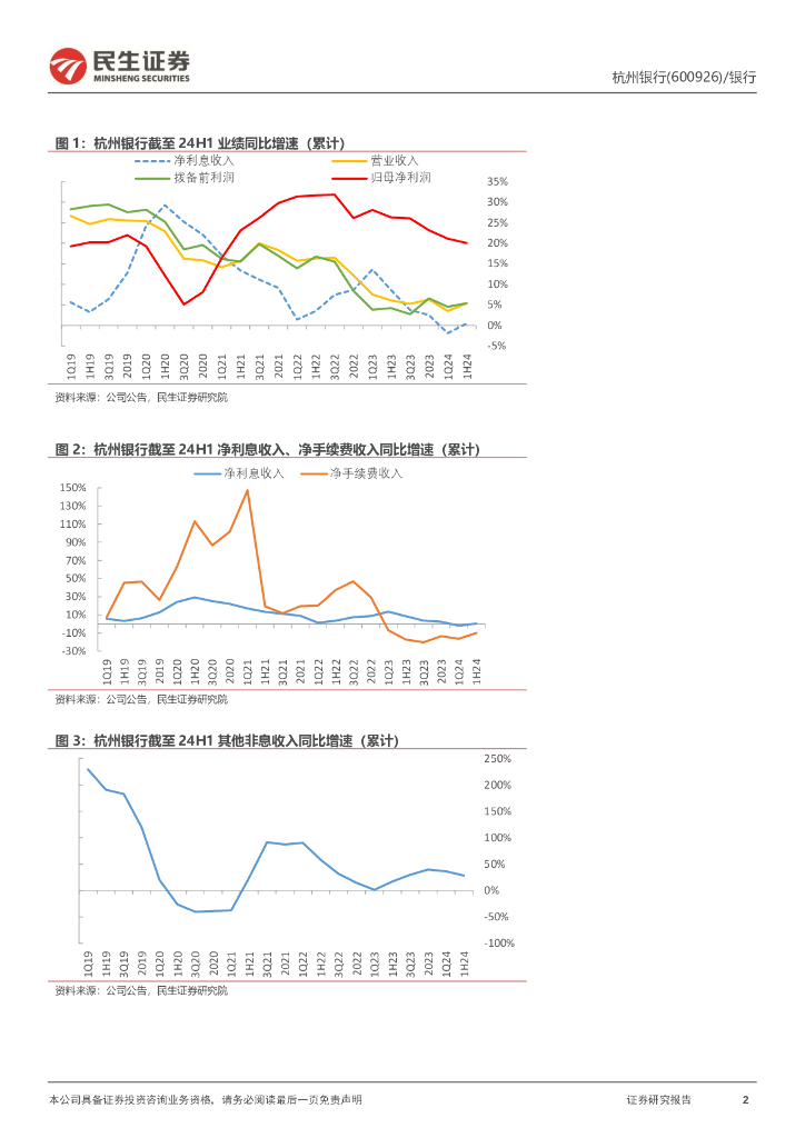 民生证券:杭州银行(600926)-2024年半年报点评:营收增速回升,资产质量优异.pdf