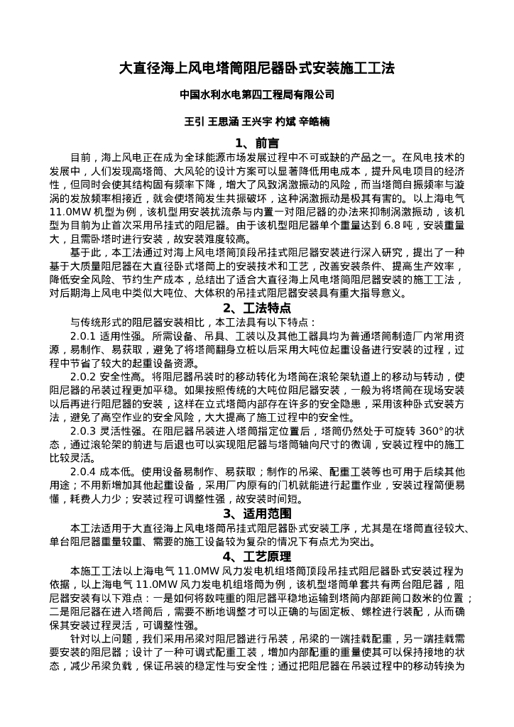QHGF-2022145 大直径海上风电塔筒阻尼器卧式安装施工工法.doc