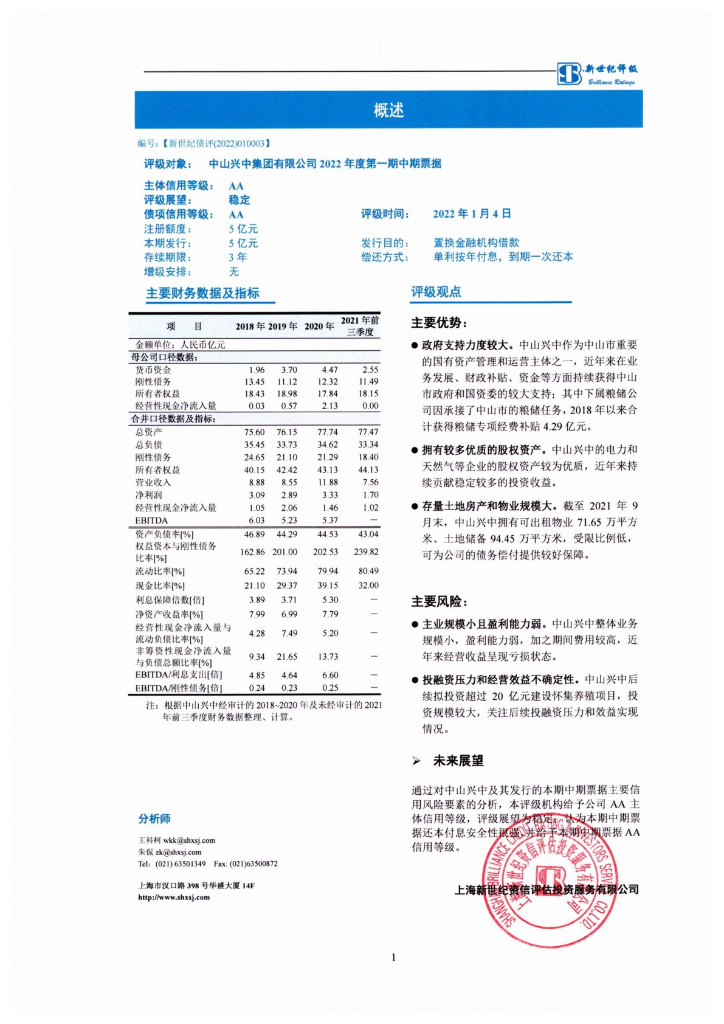 新世纪:中山兴中集团有限公司2022年度第一期中期票据评级报告.pdf