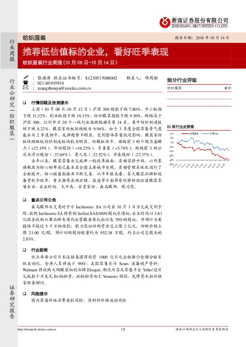 浙商证券:纺织服装行业周报:推荐低估值标的企业,看好旺季表现.pdf
