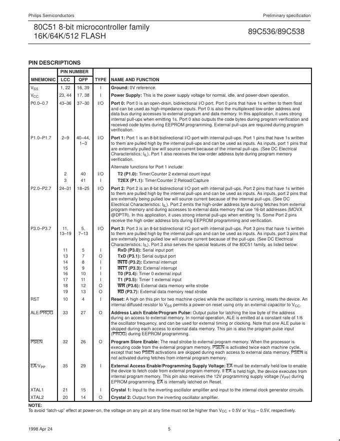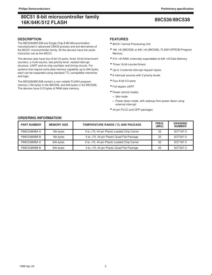 PHILIPS 89C536/89C538 80C51 8-bit microcontroller family 16K/64K/512 FLASH 数据手册.pdf