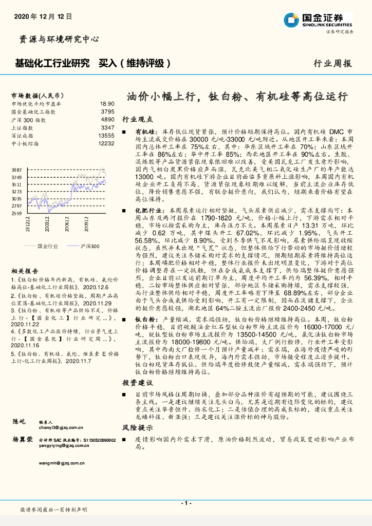 国金证券:基础化工行业研究:油价小幅上行,钛白粉、有机硅等高位运行.pdf