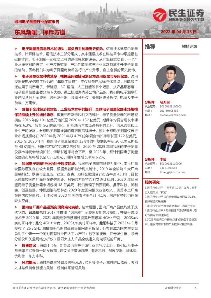 民生证券:通用电子测量行业深度报告:东风渐暖,挥斥方遒.pdf