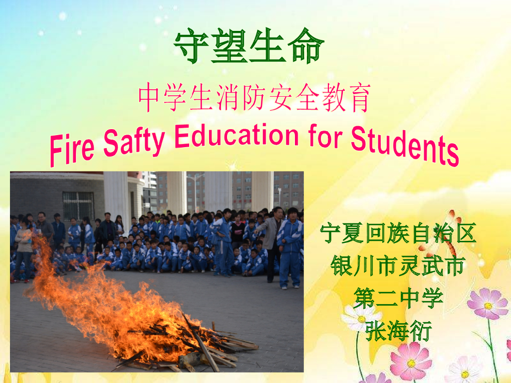 宁夏回族自治区银川市灵武市第二中学《守望生命》消防安全课件(张海衍).ppt