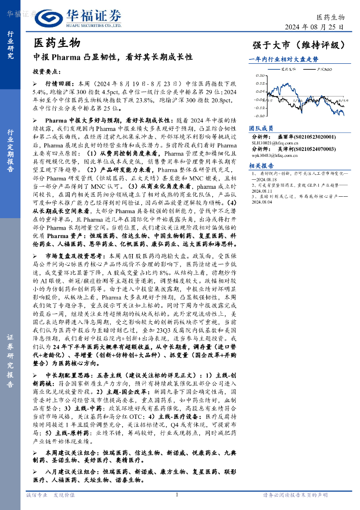 华福证券:医药生物:中报Pharma凸显韧性,看好其长期成长性.pdf
