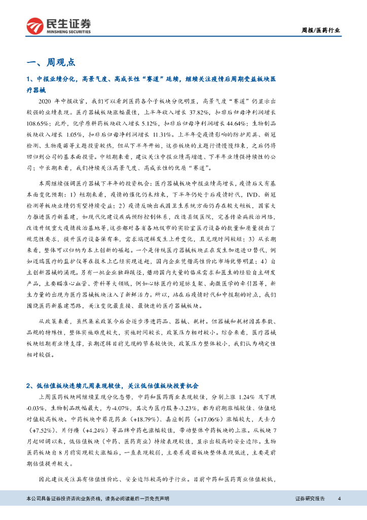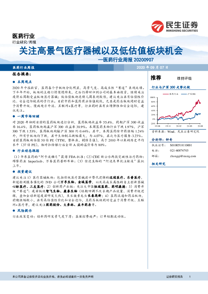 民生证券:医药行业周报:关注高景气医疗器械以及低估值板块机会.pdf