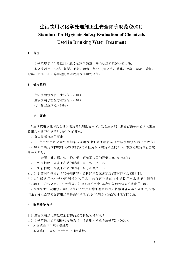 生活饮用水化学处理剂卫生安全评价规范(2001).pdf